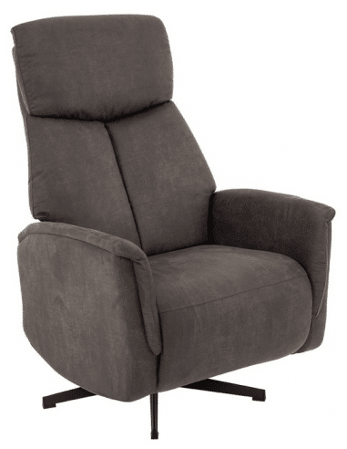 AARHUS Lænestol med elektrisk indbygget fodskammel, udført i et design fremstillet i sortlakeret metal og antracit microfiber med ruskindslook. Stolen måler 114 cm i højden over ryggen og med siddehøjde på 47 cm. Stolens ryg og fodskammel reguleres ved hj