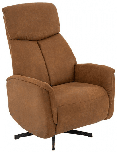 HELSINKI Lænestol med indbygget fodskammel og drejefod i microfiber H114 cm – Sort/Cognac