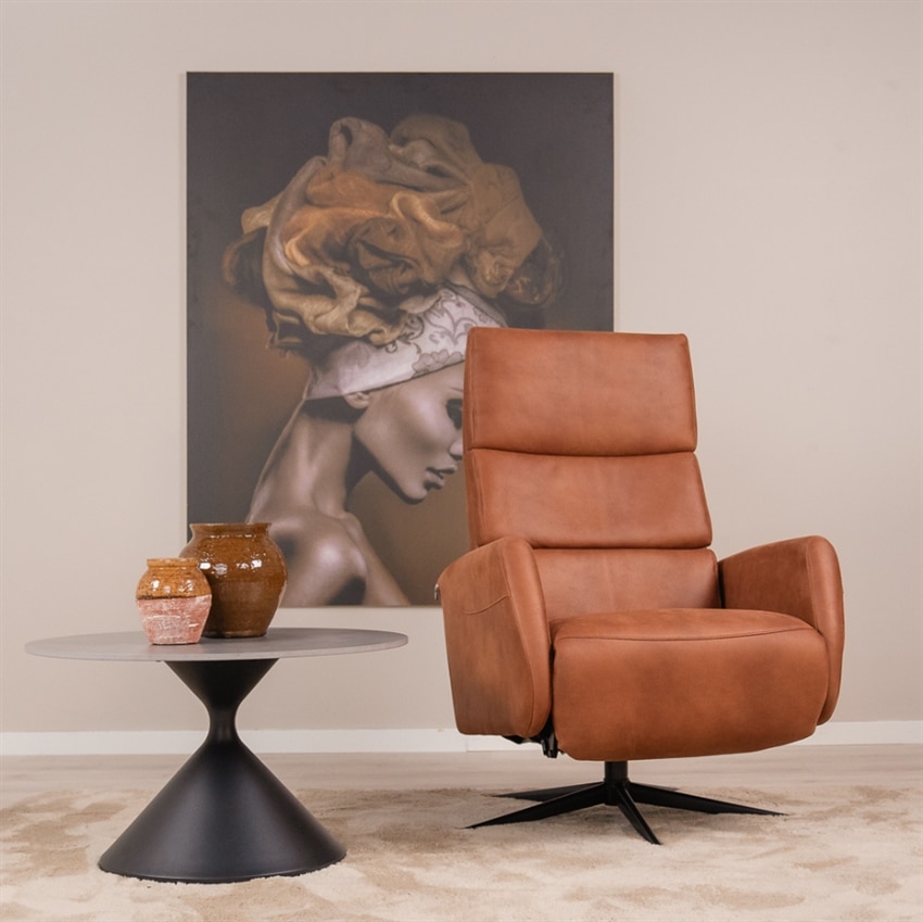 Kalle lænestol m. indbygget fodskammel – Cognac – large | Møbelsalg.dk