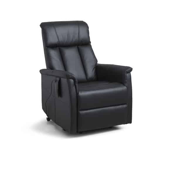 Linus recliner stol, m. 2 motorer, vippefunktion, fodskammel og armlæn – sort læder/PVC
